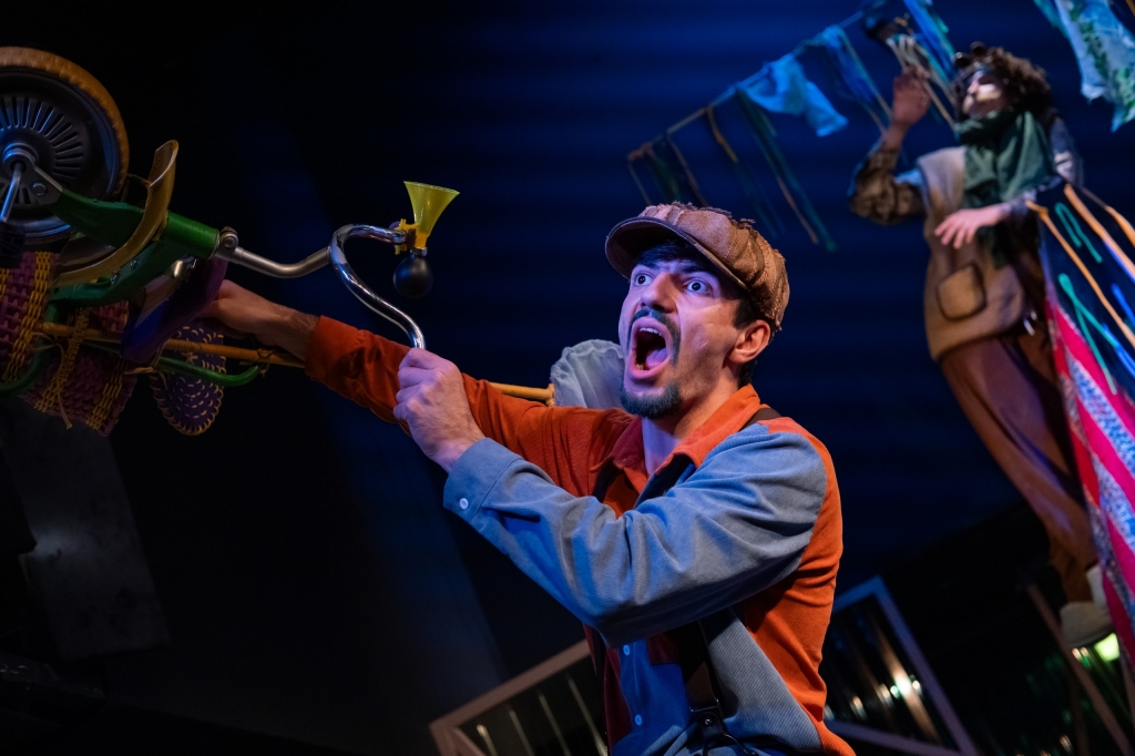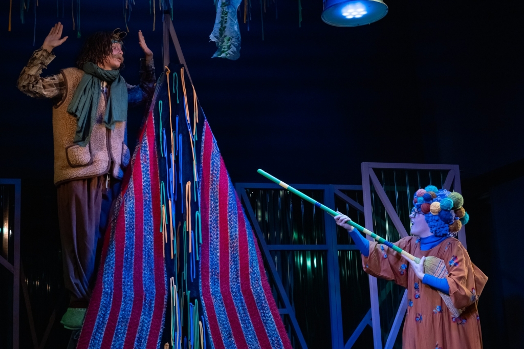 Режиссёр Евгений Трубкин помещает героев в игровое пространство, где всё может стать всем. Например, воинственная бабушка так правдоподобно целится палкой от метлы в старое дерево, что оно «сдаётся»: выходит из-за ствола и оказывается премилым «дедушкой» (Артём Хайлов). Дерево настолько старое, что помнит времена, когда «ещё не было ни электричества, ни жвачки». Оно дружит с Разбойником, ведь надо же, «чтобы был кто-то, кто может залезть на ветку и поболтать ногами».