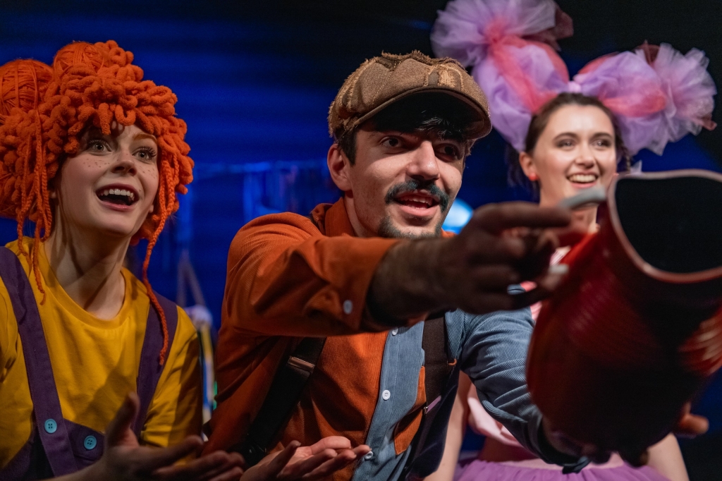 Много всего тут ещё происходит: внучка отправляется на поиски бабушки, знакомится с остальными героями. С абсолютно уверенной в собственной неотразимости Красавицей (Дарья Вишнягова) они даже становятся подругами. Всю интригу раскрывать не буду, но нельзя не сказать о том, что герои объединяются, чтобы вернуть бабушку, превратившуюся... в бабочку. Чтобы вспомнить рецепт волшебного раствора, разбойнику и приходится стоять вверх тормашками: так становятся известны все ингредиенты. Но без помощи зала создать волшебное зелье невозможно, и зрители принимают в этом активное участие: и скороговорки «накидывают», ведь по рецепту их нужно не менее двадцати; и визжат во всю силу, потому что визг — тоже важный ингредиент. Взрослые, кстати, визжали не менее активно, чем дети, ведь им такая возможность представляется реже, чем маленьким капризникам, вот и «отрывались»!