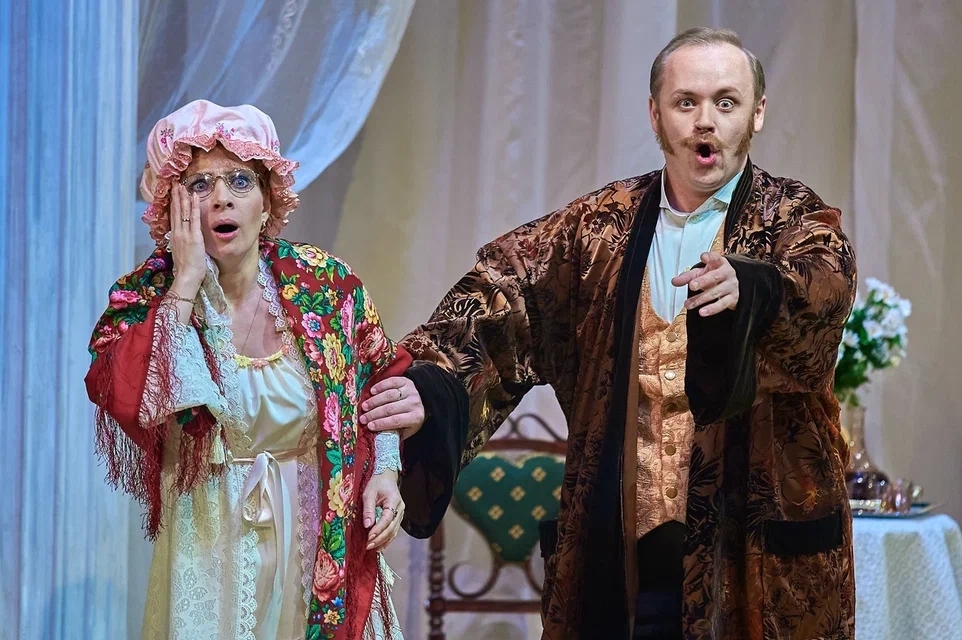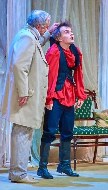 Самое лучшее в спектакле — именно эта перемена, открывающая всех героев, которые только что были исключительно комическими персонажами, как людей душевных, очень человечных, трогательных. Поэтому и хочется, чтобы не дошло до сына губернатора приглашение на смотрины. Получится ли? А как же! Всё — благодаря юному слуге: это же водевиль!