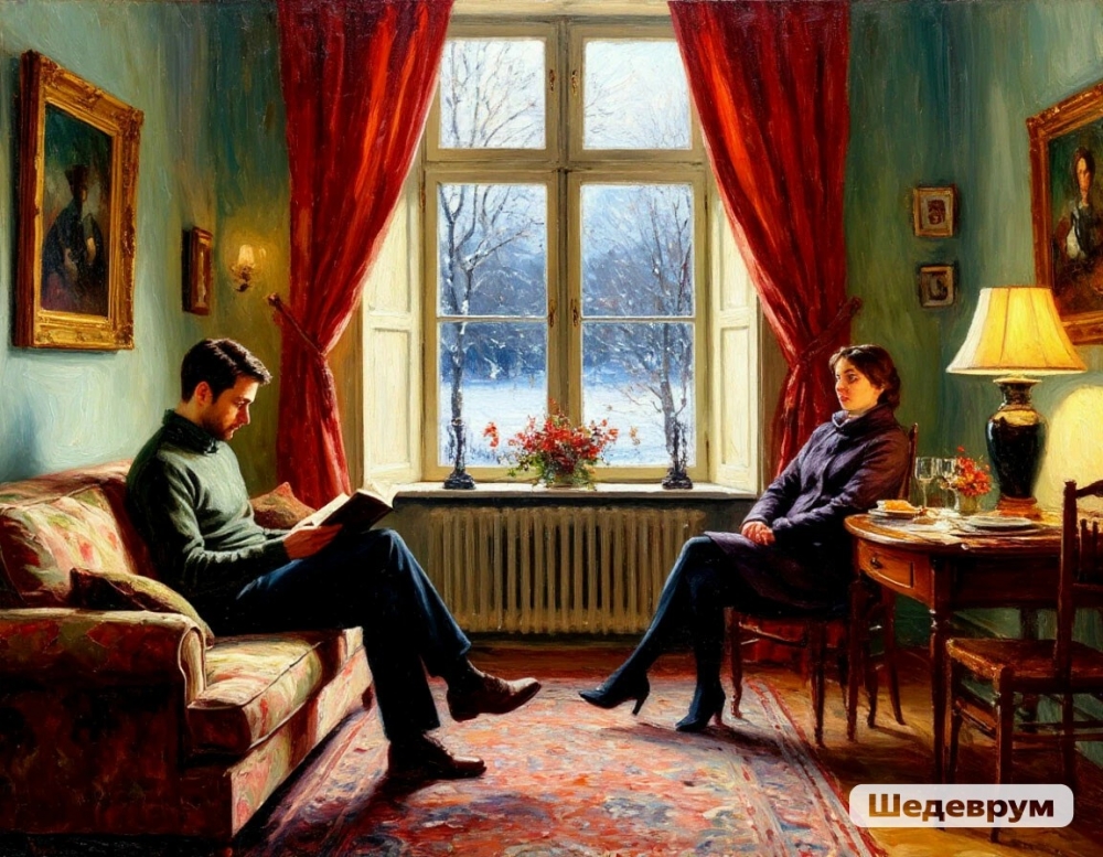1Именно в этом плотном, почти лабораторном контакте растворяются социальные роли «мужа» и «жены». Остаётся что-то более простое и более пугающее: два человека с их ритмами тревоги, усталости, потребности в любви и в одиночестве.