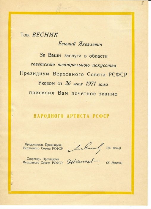 Евгений Яковлевич Весник: Собранная сегодня биография не делает его жизнь ровнее