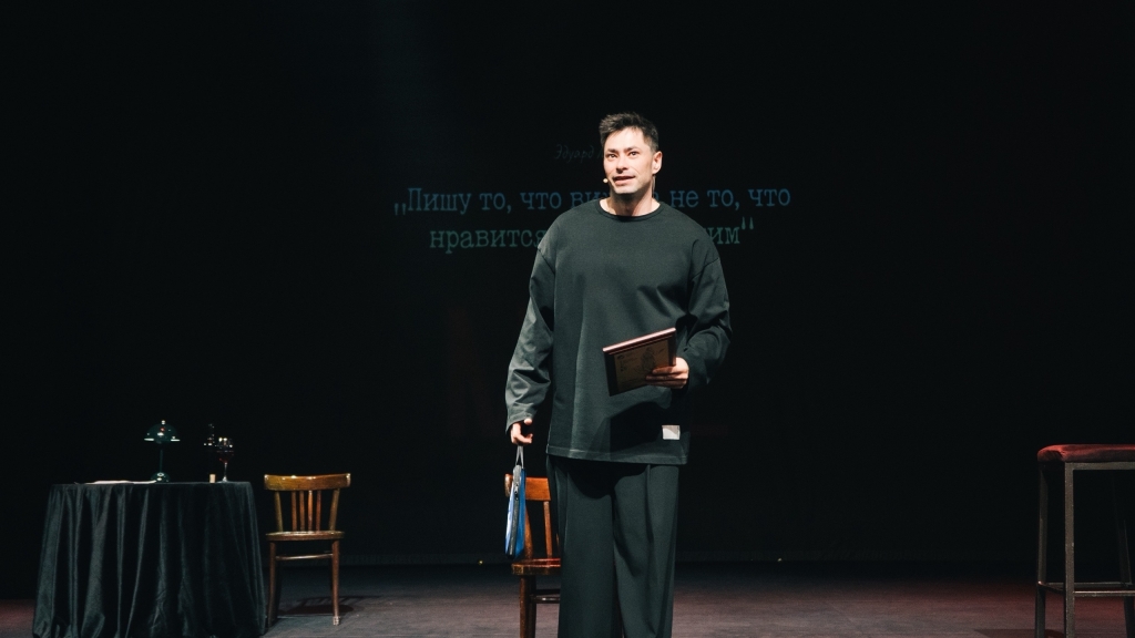 После этого начался спектакль «Мане» (12+) независимого проекта из Москвы. Его жанр обозначен как «байопик», но это не биография художника Эдуарда Мане, хотя и об основных событиях его жизни зритель узнает, и увидит проекции его знаменитых картин. Но главное здесь — восприятие нашим современником истории этого человека, шедшего за своей мечтой, за своим талантом вопреки обстоятельствам. Поэтому, по словам режиссёра Семёна Баркова, создателям спектакля важно, чтобы зрители узнали и что-то про себя, а не только про французского художника. Автор инсценировки и рассказчик Илья Шпак уже в начале признался, что не имеет ни актёрского, ни искусствоведческого образования, и сам не знает, почему взялся за эту тему. Так, в стилистике стендап-шоу, в постоянном контакте со зрителем и прошла эта встреча. «Зачем мы ходим эти картины смотреть? Почему они были написаны, а главное — что за люди эти картины написали?», — попыткой разобраться в этом и стал спектакль. И он не о Мане, а о постижении Мане, его личности и творчества нашим современником. Это честный рассказ о смелости быть собой. Ответ на вопрос, почему художники-новаторы шли против канонов, Илья понял не из книг: «Они не могли по-другому, вот и всё!».