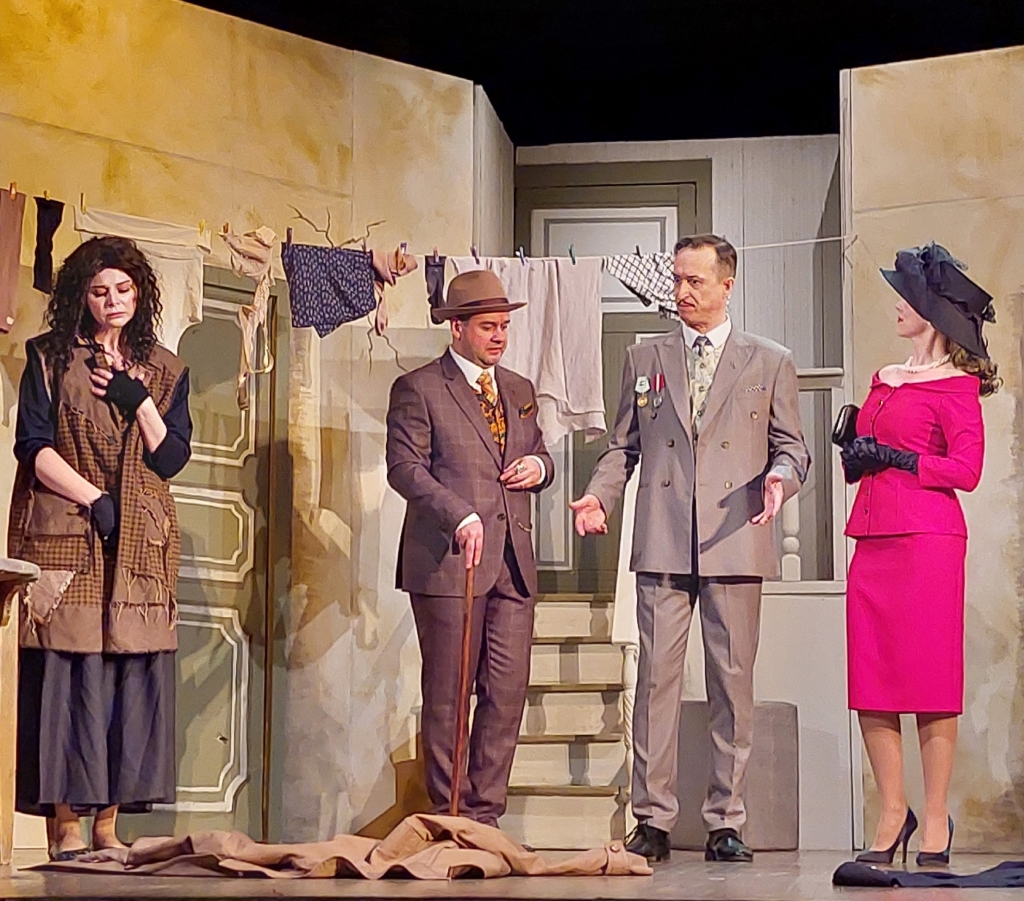 В спектакле 14 персонажей, каждого описывать не стану, чтобы сохранить эффект неожиданности. Да и сюжетные повороты раскрывать не хочется, а их — немало. Но уже сейчас понятно, что актёрский ансамбль сложился: все эти «неаполитанцы» не только освоили темп итальянской речи, но и язык жестов, передающих горячий темперамент южан. Даже полуживой дедуля (Игорь Школин) то и дело норовит присоединиться к всеобщему веселью!