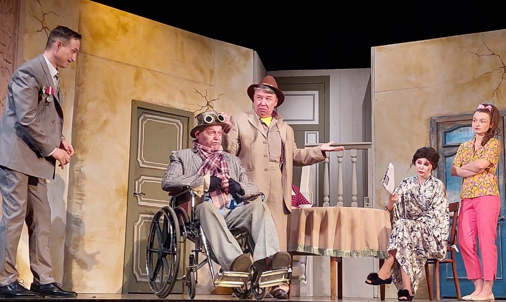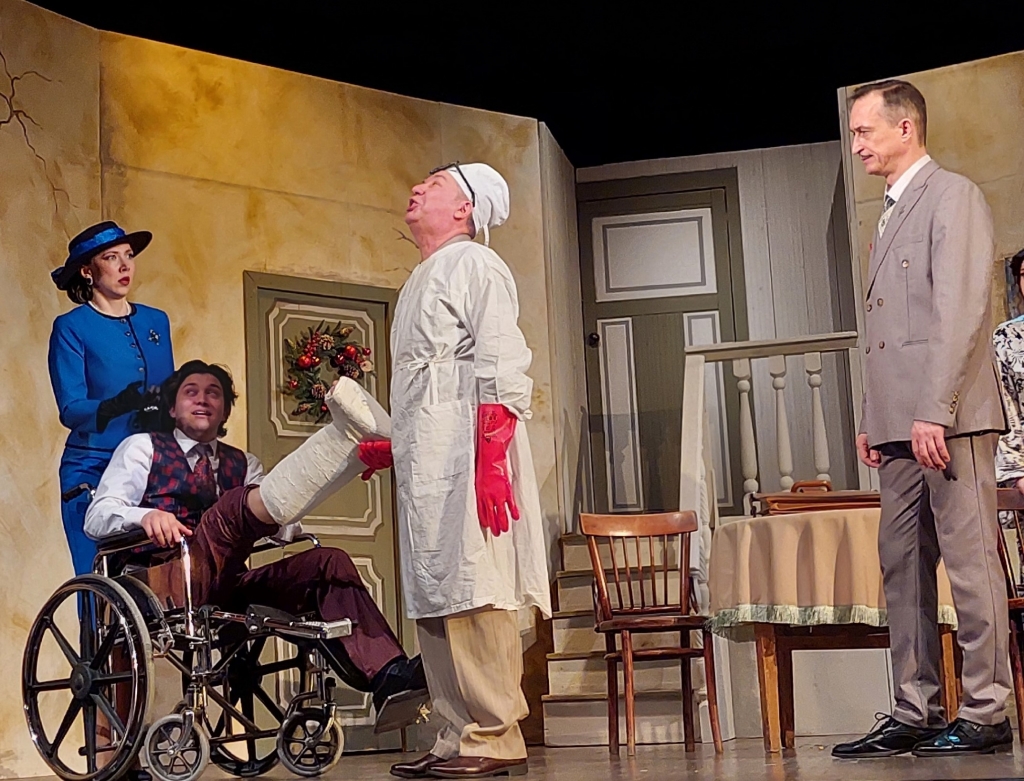 Во-вторых, здесь нет «пыли веков»: актёрам достался замечательный современный текст Дамира Салимзянова, осуществившего новый перевод и создавшего свою сценическую версию. Здесь много языковой игры, когда, например, герои по-разному понимают словосочетание «моя половина»: один имеет ввиду свою жену, другой — часть заработанных общей аферой денег. Тут, конечно, и до ссоры недалеко! А когда мать пациента заподозрила лже-врача в том, что он нетрезв — видно, пришёл к больному после праздника — тот, как в бронзе отлил: «Для хирурга праздник без перелома — не праздник». Да, зрителя позабавит не только сюжет, но и то, как он рассказан.