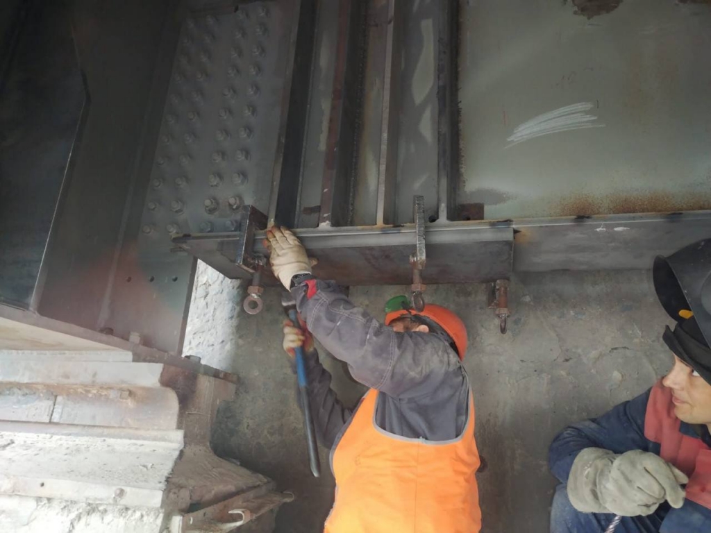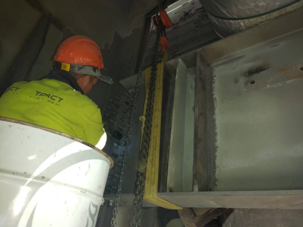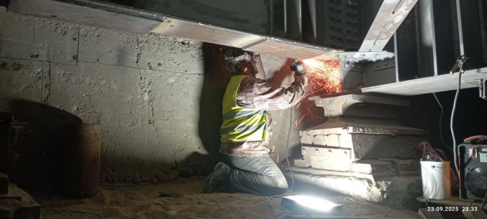 В частности, продолжается монтаж элементов усиления главных балок пролётного строения и домкратных балок на 8-й опоре. В работах используются детали из хромокремниевой стали с никелем — 15 ХСНД — этот сплав отличается высокой прочностью и улучшенными антикоррозионными свойствами. Только на этой одной опоре объём наращенного металла составит более 6 тонн. После установки допконструкции загрунтуют и окрасят.