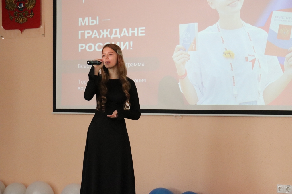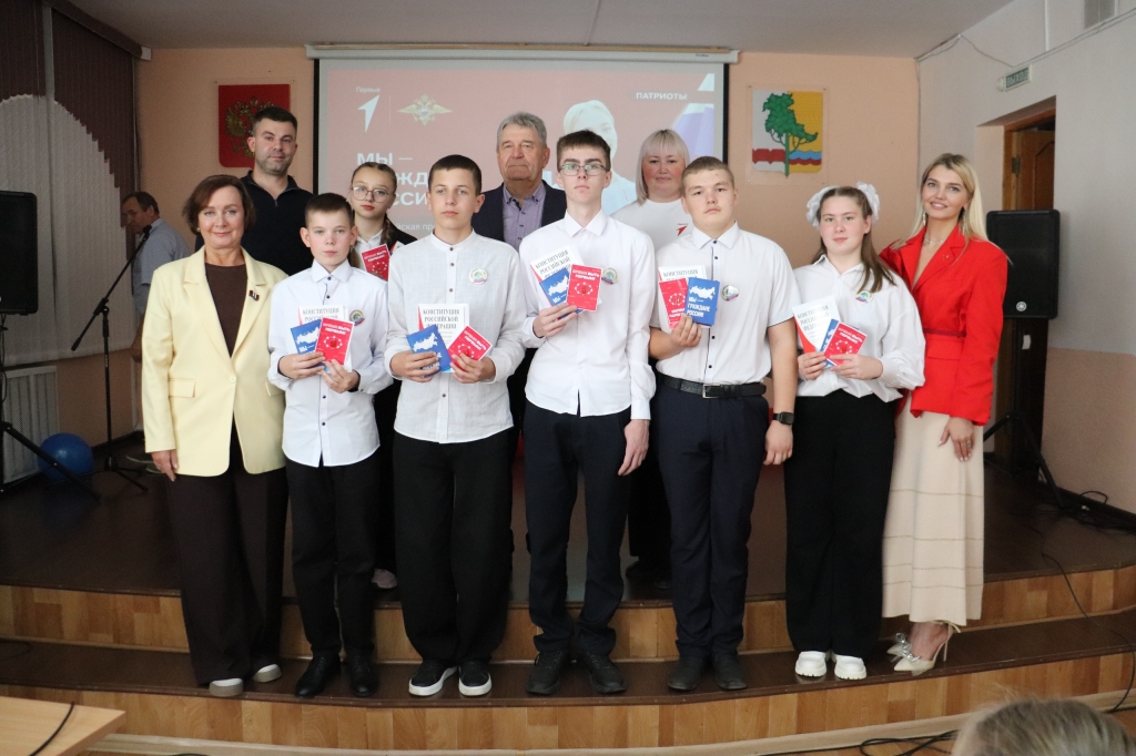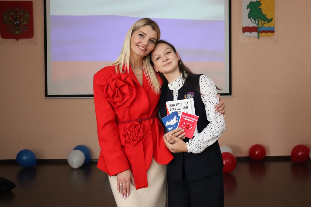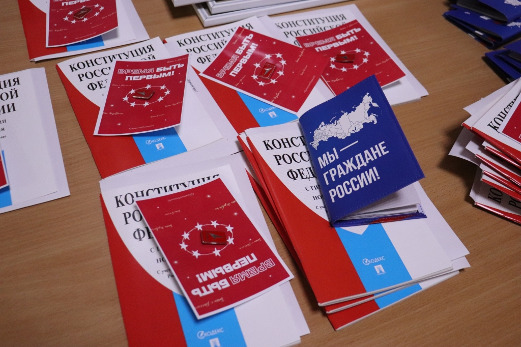 В кульминационной фазе праздничных мероприятий ребятам вручили не только сам документ, удостоверяющий личность, но и издание основного закона государства – Конституции Российской Федерации, а также обложку для паспорта и значок с символикой Первых.