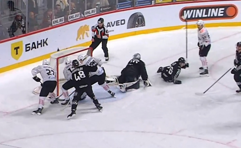 «Ястребы» вновь пропустили от «медведей» пять шайб, но зато забили в 8 раз больше, чем в предыдущей встрече этих соперников — хватило и на реванш, и на рекорд КХЛ этого сезона.