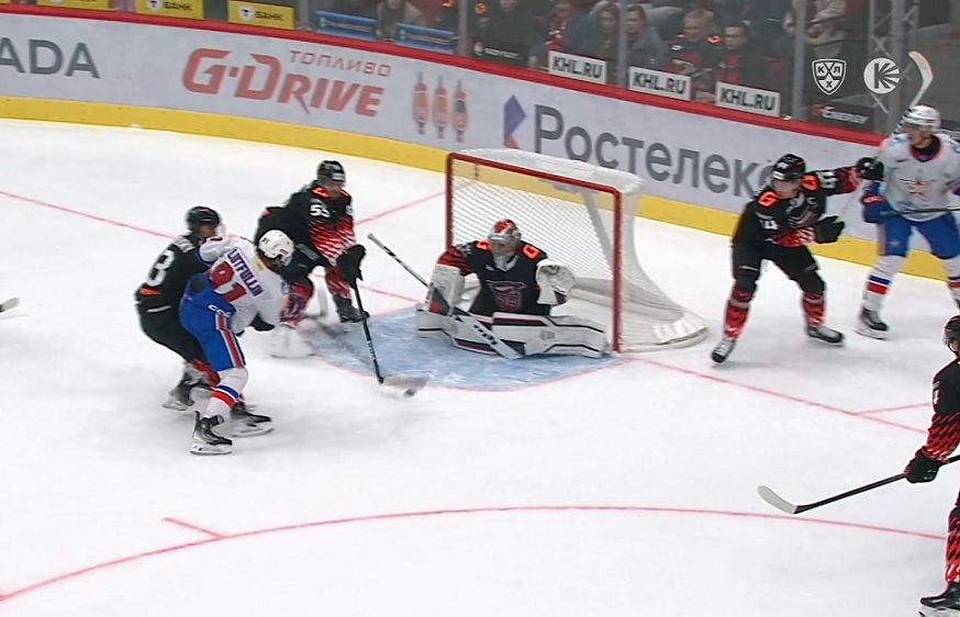 Одна на всех шайба в этом матче случилась еще в первом периоде, на 19-й минуте, когда Дамиру Шарипзянову не удалось прервать передачу из-за ворот на пятачок, а Михаил Котляревский не смог помешать бросить принявшему её молодому форварду гостей.
