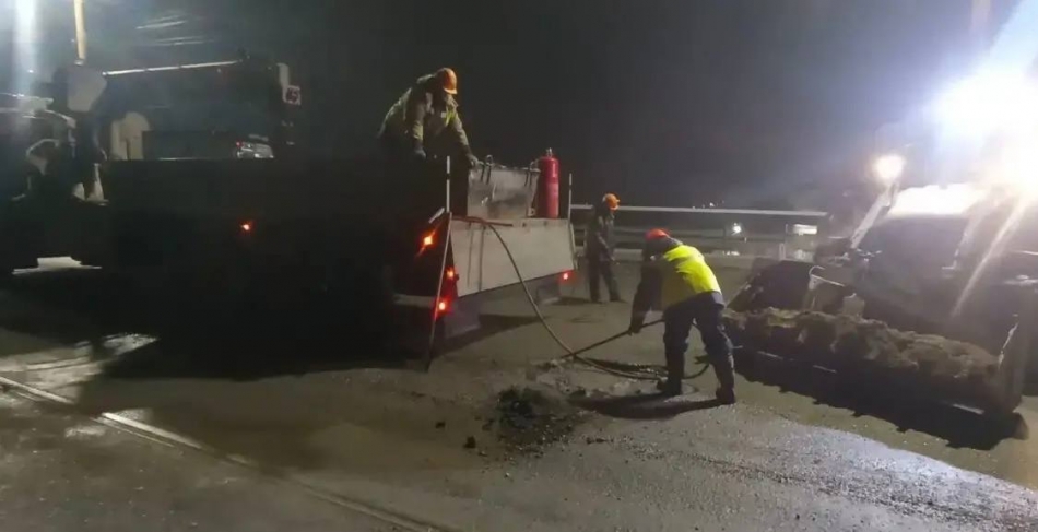 1Минувшей ночью подрядчик снова провёл локальный ремонт проезжей части. Эта работа ведётся последние несколько месяцев и будет продолжена с оглядкой на погоду и во все дальнейшие ночные перекрытия, которые предусмотрены для обслуживания объекта.