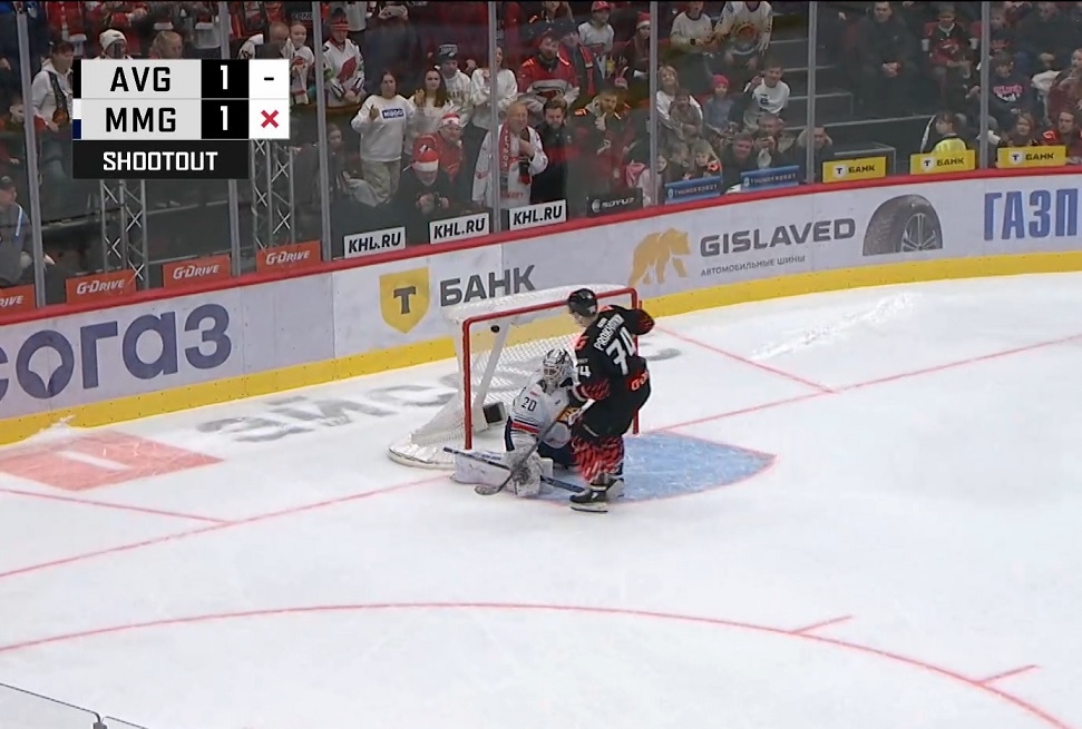 Первая серия из трех пар бросков закончилась вничью - «Авангард» в лице Константина Окулова реализовал самый первый из них, хоккеист «Магнитки» — последний. Но больше Никита Серебряков не пропустил, а вот вратарь магнитогорцев не справился со второй попыткой всё того же Прохоркина. Так Николай стал автором обеих засчитанных шайб своей команды, «Героем ФОНБЕТ-овертайма», первой звездой матча по версии как «Кинопоиска», так и официального сайта КХЛ, а затем и принял шлем с кольчугой как лучший игрок по мнению его товарищей по команде. Главный же тренер клуба Ги Буше назвал его в победной раздевалке Mister Pro.