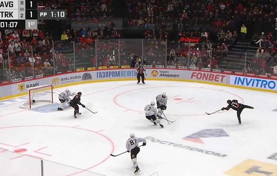 1Вторая двадцатиминутка началась как и стартовая — с преимуществом «ястребов», но уже без ненужных сюрпризов. Гости за ними явно не поспевали, раз за разом отбрасывались и пробрасывались. «Авангард» продолжал гнуть свою линию и на 28-й минуте увеличил разрыв в счете: Наиль Якупов прокатил за воротами соперника и отдал шайбу точно на стремительно катившего к пятачку Николая Прохоркина — тот броском с ходу «прошил» вратаря уральцев. На 36-й довел счет до 4:1 Иван Игумнов. Редко забивающий «таскатель роялей» удачно вовремя оказался напротив неприкрытого угла, принял там шайбу, пришедшую после дальнего броска Игоря Мартынова и попыток добивания от Михаила Котляревского, подправил её коньком точно на клюшку — и забил.