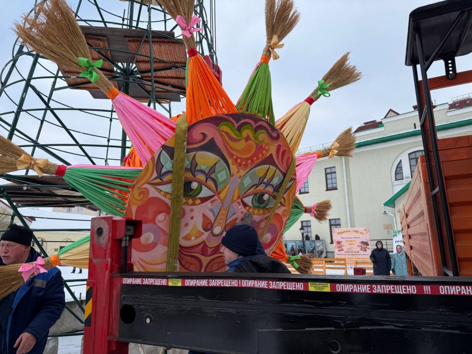 В Омской крепости полным ходом идёт подготовка к масленичным гуляниям. Сегодня к празднику наряжали чучело Масленицы высотой 16,5 метров. На ее украшение, как рассказал в своем Телеграм-канале мэр Омска Сергей Шелест, ушло 250 погонных метров ткани, а работы по ее пошиву заняли две недели.