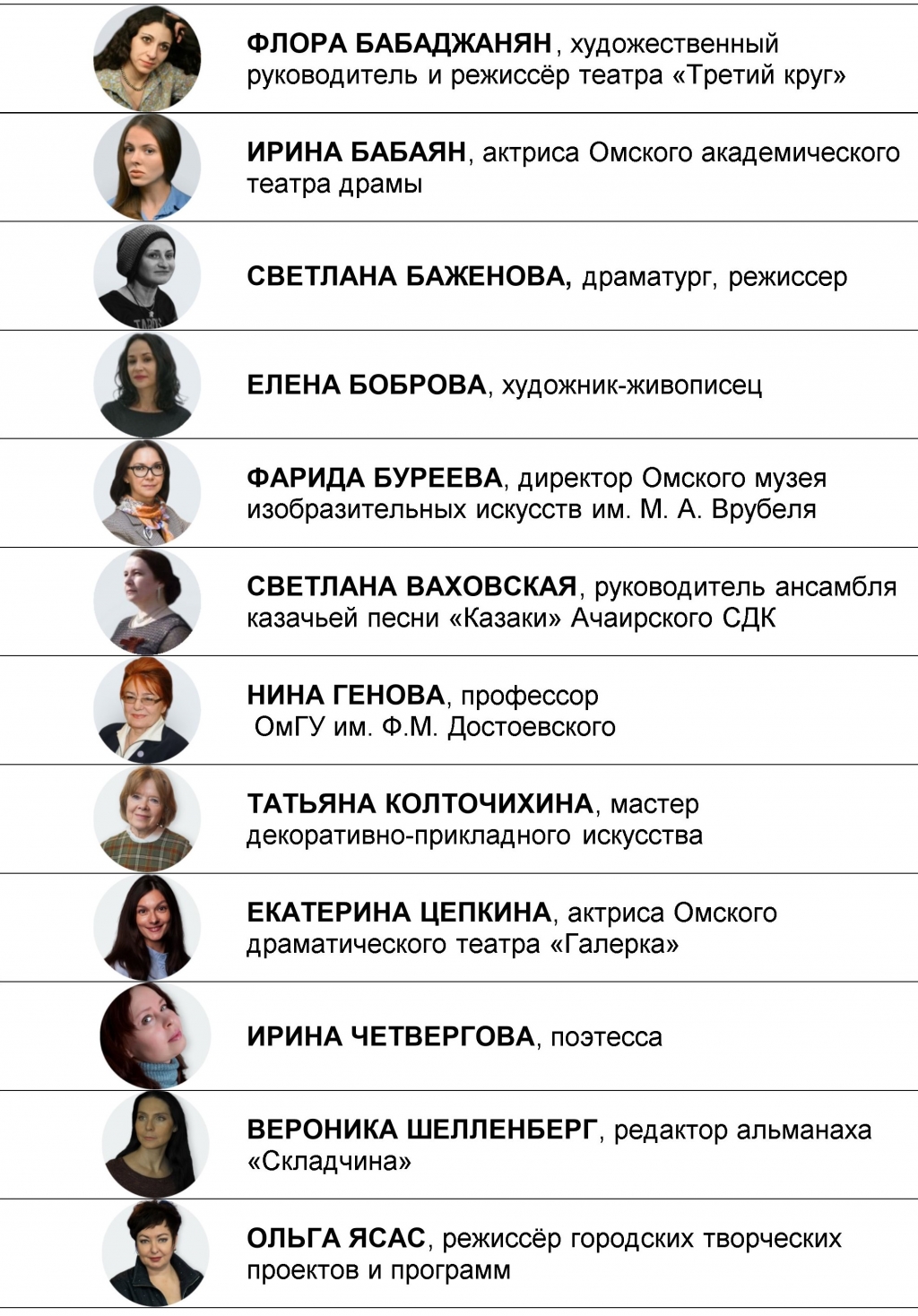 Интерес, проявленный к спецпроекту, не мог нас не порадовать — за неполный месяц, напомним, от жителей региона поступило более тысячи заявок. В итоговый лонг-лист вошло более 350 фамилий. В ходе месячного народного интернет-голосования за наших прекрасных кандидаток было подано 204730 голосов. Параллельно свою версию топ-100 формировало экспертное жюри. В его состав вошли депутат Государственной Думы РФ Олег Смолин, Уполномоченный по правам предпринимателей в Омской области Юрий Герасименко, Председатель Омского регионального отделения «ОПОРЫ РОССИИ» Александр Дерябин, председатель Омского регионального отделения «Союза армян России» Арабо Григорян, председатель Совета директоров ООО «Миард» Павел Кручинский, депутат Омского городского Совета, гендиректор ООО «Омский медиа-холдинг» Юрий Козловский, руководитель «СМК Холдинг», депутат Омского городского Совета Максим Концедалов, руководитель Фонда общественных инициатив в сфере культуры, спорта и молодёжной политики «ВМЕСТЕ», директор кинотеатров «Слава» и «Первомайский» Дмитрий Савельев, член Совета Омского регионального отделения «ОПОРЫ РОССИИ», гендиректор ООО «Энерголидер» Олег Ананьев, член Совета Российской автомобильной федерации, многократный чемпион и обладатель Кубка России по автогонкам, директор СШОР №3 Александр Фабрициус, директор «Бюро судебных экспертиз» Алексей Алгазин, член Союза театральных деятелей России, Союза российских писателей и Союза журналистов РФ, поэт и театральный критик Сергей Денисенко, соучредитель ИА «ВОмске» Сергей Мацута.