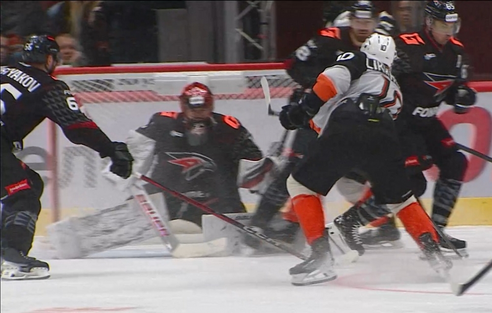 После второго перерыва вынужденные отыгрываться «ястребы» предсказуемо начали наращивать давление на ворота гостей, но не сказать, что особо преуспели. Более того — меньше чем за пять минут до сирены зевнули контратаку и на табло высветилось уже 2:4. Ги Буше, естественно, почти сразу после этого усадил голкипера на лавку и отправил своих подопечных на штурм вшестером. И это дало кое-какой результат — Дамир Шарипзянов дальним броском (по сути неточным, но с очень удачным рикошетом от игрока гостей) разрыв в счете сократил до минимума, но на большее его команды не хватило. Итого 3:4 в пользу «Амура».