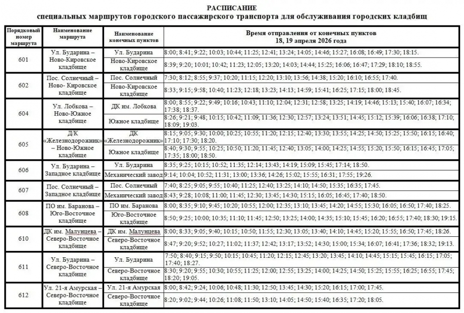 — В преддверии Радоницы — 18 и 19 апреля — организуем работу 24 автобусов среднего и большого классов до городских кладбищ.